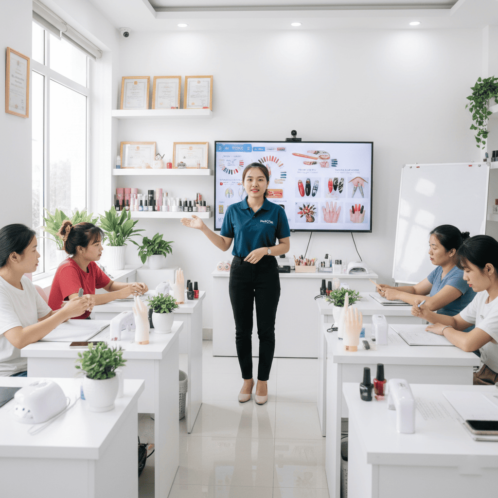 Mở tiệm nail kinh doanh hiệu quả đòi hỏi kỹ năng quản lý toàn diện từ chọn địa điểm, thiết kế không gian đến vận hành hàng ngày. Khóa học cung cấp hướng dẫn chi tiết giúp học viên khởi nghiệp thành công ngay từ bước đầu.